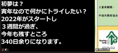 例会は、聴覚障害者支援センターからの遠隔要約筆記を用い、先生にはご自宅からスライド画面をZoomで共有していただきながら、進めました。