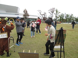 2024年11月10日(日)10時〜15時、四日市市中央緑地公園、芝生広場にてみみフェスティバル2024が開催されました。みみフェスティバルというのは、聴覚障がい関係団体をはじめ、三重県警察本部、津地方気象台、第四管区海上保安本部などによる展示・体験・販売・ゲームなど楽しい企画が盛りだくさんで、聴覚障がい者への理解等を目的に開催されるものです。三重難聴も役員、会員で出店しました。集客目当てで輪投げコーナーも作りました。 当日は曇り空だったのですが、程よい暖かさで過ごしやすい1日でした。マラソン大会終わりの集客を見込んだのですが、芝生広場がやや端の方に位置していた為か、来場者は少なかったようです。芝生0広場の近くには小さい子たちが遊ぶ遊具があり、そこで遊んでいる親子連れが、結構来場していて、ブースを回って楽しんでいました。当日は、午後2時ごろに雨が降ってきたため、急いで撤収し、予定終了時刻(午後3時)より早めに終了しました。